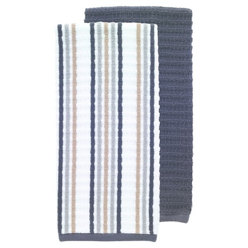 2pk Solid Stripe Waffle Terry Kitchen Towel 16 X28 T Fal