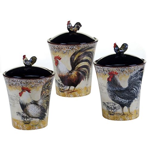 Certified International Vintage Rooster 3 Pc Kitchen Canister Set